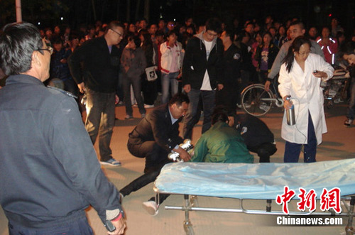 事發(fā)現(xiàn)場(chǎng),肇事車輛前擋風(fēng)玻璃當(dāng)場(chǎng)撞碎,兩被撞女生一人昏迷,一人倒地不能動(dòng),昏迷女孩頭部有血跡。事發(fā)后,有學(xué)生去通知校警衛(wèi)室,有學(xué)生去通知校醫(yī),有學(xué)生撥打了110、120,也有學(xué)生記下肇事車輛車牌號(hào)。