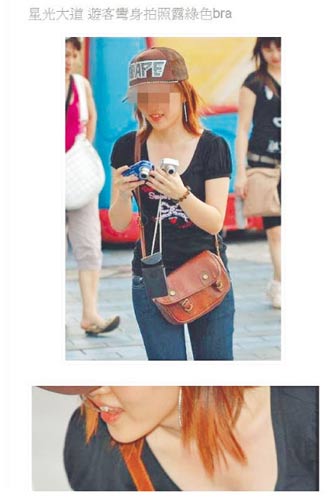 媒體報(bào)道一個(gè)新網(wǎng)志最近兩月刊載大量女游客及女學(xué)生走光照,相片疑主要攝自旅游點(diǎn)如星光大道、尖東海濱長(zhǎng)廊、尖沙嘴文化中心及海洋公園,有立法會(huì)議員、大律師及導(dǎo)游均譴責(zé)網(wǎng)志嚴(yán)重侵犯私隱,兼影響香港旅游聲譽(yù),促請(qǐng)警方加強(qiáng)執(zhí)法打擊偷拍者及刊載網(wǎng)站。