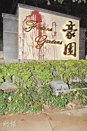 中新網(wǎng)7月6日電 據(jù)香港明報報道,住有多名名人的香港老牌豪宅“豪園”,門外兩個大門牌5日凌晨遭人淋潑紅油,更被貼上多張寫有同一人名的追債紙張。屋苑保安其后巡經(jīng)發(fā)現(xiàn)報警,警方正調(diào)查案件是否與工程公司或住客等有關(guān)。