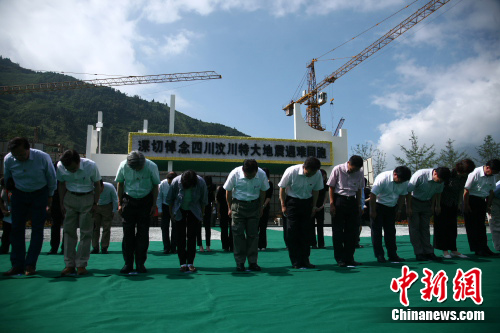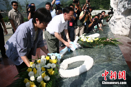 隨后,曾蔭權(quán)一行來(lái)到漩口中學(xué)地震遺址。烈日下,曾蔭權(quán)肅立默哀,向汶川大地震遇難者和在抗震救災(zāi)中英勇?tīng)奚牧沂咳瞎I(xiàn)花祭奠。