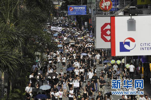 新華社香港8月29日電(記者裴闖 茆雷磊)香港特區(qū)立法會(huì)各政團(tuán)29日下午聯(lián)合發(fā)起“沉痛哀悼遇害同胞 要求徹查事件真相”游行。主辦方表示,參加游行者達(dá)8萬(wàn)人。游行在平和的氣氛下舉行。