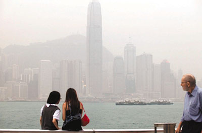 香港受“獅子山”外圍氣流影響,使空氣質(zhì)素持續(xù)欠佳,昨晨維港被煙霞籠罩,能見度低至4000米。香港環(huán)保署在中環(huán)路邊監(jiān)測站錄得空氣污染指數(shù),一度高達146的甚高水平,而銅鑼灣及旺角最高指數(shù)分別為134及108。環(huán)保署預期,有雨天氣有利污染物擴散,相信空氣污染指數(shù)今天回落。