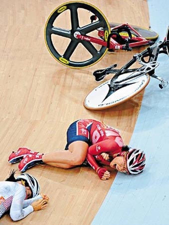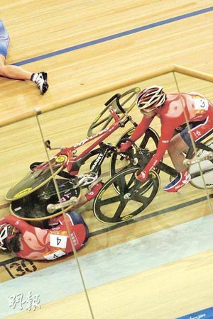 中新網(wǎng)11月17日電 據(jù)香港《星島日報》報道,廣州亞運女子場地記分賽,出現(xiàn)振奮人心的一幕。有“女版黃金寶”之稱的香港自行車選手黃蘊瑤,向世人示范了什么才是鋼鐵意志,她在比賽中段遇上嚴重意外,身體更被單車兩度輾過,但仍堅忍肋骨骨折及肺氣腫傷痛繼續(xù)比賽,終為香港取得一面“血淚銀牌”。頒獎后須坐輪椅離場的黃蘊瑤不時激動痛哭,令全場所有人動容。