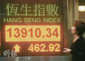 恒指24日勁升462點,收報13910點,直逼14000點關(guān)口,成交同時增加,港元匯價又告轉(zhuǎn)強,或反映有資金流入香港。香港金管局24日晚再向市場投入31億港元,這是自上周五以來第三次向市場注資,令截至本周五銀行體系結(jié)余增至1232億元。任志剛24日早被香港傳媒問及時,稱注資很正常。