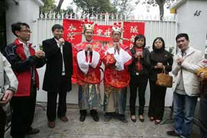據(jù)香港大公報(bào)報(bào)道,王國(guó)興聯(lián)同打扮成財(cái)神的議員,與大約三十名來(lái)自東涌和天水圍的居民先到財(cái)政司司長(zhǎng)官邸請(qǐng)?jiān),并將一副要求政府減稅和增加福利的對(duì)聯(lián)掛在官邸大閘外。一行人后來(lái)再到政府總部門外,向政府代表遞交四千幾個(gè)市民的簽名后離開(kāi)。