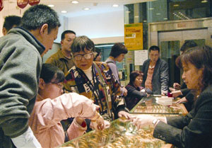 港資連鎖金號負責人何先生指,原本此時也非飾金銷售旺季,不過金價略回,加上近期港股波動,倒吸引部分人買金飾保值,23日生意額較平時周日好10%,主要是內地客“撐場”。不過,也由于港股或內地股巿近期下滑,不少旅客及居民做了“大閘蟹”,飾金消費也更為保守,整個檔期消費與去年差不多。