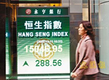 恒指15日一度升628點(diǎn),收市升幅收窄至288點(diǎn)。(圖片來源:文匯報)