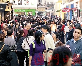 中新網(wǎng)1月19日電 據(jù)澳門日?qǐng)?bào)報(bào)道,春節(jié)將至,近日澳門市面人流如鯽,居民、游客紛紛出動(dòng)辦年貨。有鞋店生意忙不過(guò)來(lái),平均每3分鐘結(jié)帳一次。但不少店鋪負(fù)責(zé)人均表示,按以往經(jīng)驗(yàn),新春前一周是全年最旺的檔期,但今年的生意比去年跌20%至30%,銷情只屬一般。
