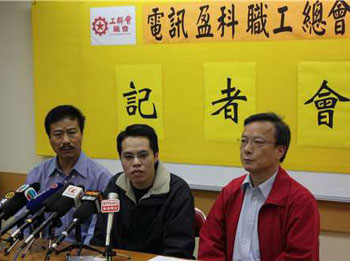 香港工聯(lián)會(huì)權(quán)益委員會(huì)及電盈工會(huì)19日召開(kāi)緊急記者會(huì),工聯(lián)會(huì)權(quán)益委員會(huì)副主任崔世昌表示,19日收到35個(gè)電盈員工投訴,稱被公司解雇,其中包括16名長(zhǎng)工和19名合約工,主要來(lái)自產(chǎn)品市場(chǎng)及推廣部及寬帶網(wǎng)絡(luò)設(shè)計(jì)部,年資最長(zhǎng)30年。