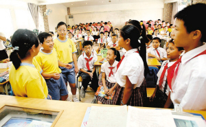 在為期一天的活動(dòng)中,92名香港師生體驗(yàn)了濱河小學(xué)的校園生活。他們與濱河小學(xué)師生一起升國(guó)旗、唱國(guó)歌,并且深入班級(jí)跟班學(xué)習(xí)數(shù)學(xué)、英語(yǔ)、語(yǔ)文、思想品德等課程。下午,百名學(xué)生一起,你畫(huà)一座山,我畫(huà)一條河,最終繪制出一幅長(zhǎng)達(dá)30米的山水畫(huà)卷,贊美祖國(guó)的大好河山。濱河小學(xué)校長(zhǎng)孔文東說(shuō),通過(guò)交流,香港師生更加了解祖國(guó)內(nèi)地,深圳學(xué)生通過(guò)香港這個(gè)窗口也更加了解世界。香港宣道小學(xué)校長(zhǎng)張景蘇也表示,通過(guò)實(shí)地參觀和交流,他們更多地了解了深圳學(xué)生的學(xué)習(xí)和生活情況,尤其是增進(jìn)了兩地師生的友誼。(袁糧鋼)