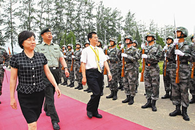 學(xué)員早上乘車到解放軍北京衛(wèi)戍區(qū)的軍營(yíng)參觀,文匯報(bào)副社長(zhǎng)兼未來(lái)之星同學(xué)會(huì)主席韓力在北京衛(wèi)戍區(qū)警衛(wèi)三師副師長(zhǎng)朱繼明陪同下檢閱軍隊(duì),之后兩人與北京衛(wèi)戍區(qū)警衛(wèi)三師副參謀長(zhǎng)閆慶峰、北京衛(wèi)戍區(qū)警衛(wèi)三師十一團(tuán)團(tuán)長(zhǎng)李永奎、北京衛(wèi)戍區(qū)外事處處長(zhǎng)王普升等及一眾同學(xué)欣賞軍事表演。