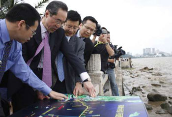 大橋口岸將采用“三地三檢”設計,相對于珠、澳口岸設置在拱北灣附近填海修建的同一人工島上,目前港方正考慮在香港機場東北對開海面填海,修筑口岸人工島。記者獲悉,現(xiàn)時三地口岸的總體布置推薦方案已出爐,并初步獲得粵港澳三地政府及運作部門的認可。