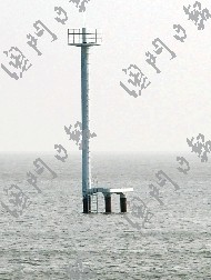 為配合大橋開工專門興建的監(jiān)管躉船輔助設(shè)施及微波傳輸平臺,2日已在拱北灣北側(cè)水域建成,該平臺將擔(dān)負(fù)大橋建設(shè)水上交通安全監(jiān)管無線微波傳送工作。