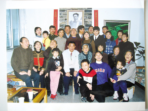 聞家家祭后的合影。當(dāng)中穿灰白夾克的是聞一多次子聞立雕。(記者佘暉)