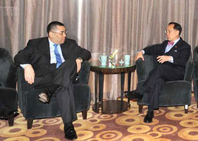 中新網(wǎng)3月4日電 據(jù)香港中通社報道,香港特區(qū)行政長官曾蔭權(quán)及澳門特區(qū)行政長官崔世安3日下午抵達北京后,兩人共進晚餐。曾蔭權(quán)及崔世安將列席5日全國人大會議開幕式。