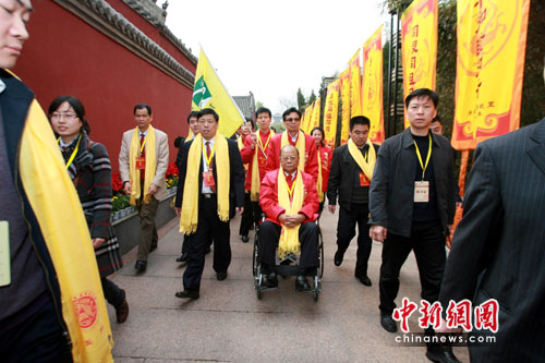 中新網(wǎng)鄭州4月16日電 (記者 趙敏 何曉聰)16日,庚寅年黃帝故里拜祖大典在河南新鄭黃帝故里舉行,香港客屬代表曾憲梓率團抵達祖根圣地,祭奠人文始祖軒轅黃帝。