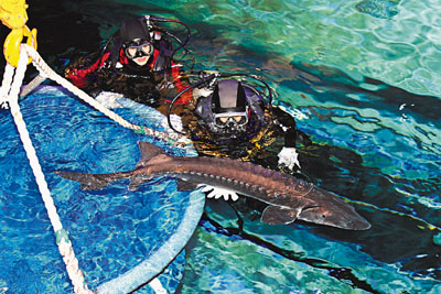 中新網(wǎng)4月24日電 據(jù)香港《文匯報(bào)》報(bào)道,內(nèi)地贈(zèng)送香港的10只國(guó)寶級(jí)中華鱘,經(jīng)過16小時(shí)運(yùn)送后,23日安全抵達(dá)香港海洋公園,該園指它們身體狀況及適應(yīng)情況十分良好。