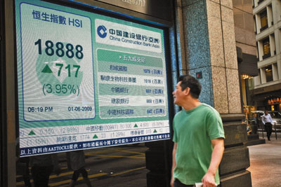 打破“五窮”宿命的港股,踏入6月份首個(gè)交易日,大有再破“六絕”之勢。在內(nèi)地PMI數(shù)據(jù)理想消息帶動下,延續(xù)上周強(qiáng)勢,連續(xù)第3天急升,3天共升達(dá)1895點(diǎn)。大市1日在工商及銀行股帶領(lǐng)下,午后升幅進(jìn)一步擴(kuò)大,并以近全日高位收市,收報(bào)18888點(diǎn),升717點(diǎn)或3.95%,升幅為亞太區(qū)中除印度尼西亞外最大的股市。