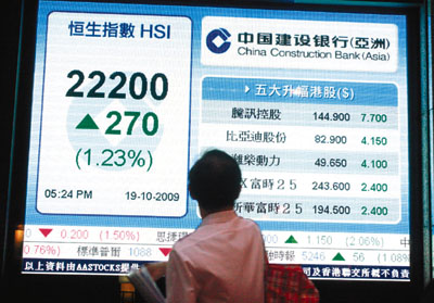 中新網(wǎng)10月20日電 據(jù)香港《文匯報(bào)》報(bào)道,港股19日低開后回升,隨內(nèi)地股市午后升幅擴(kuò)大,港股也跟隨,曾經(jīng)升過逾300點(diǎn),全日升270.5點(diǎn),收?qǐng)?bào)22200點(diǎn),是逾14個(gè)月以來,恒指首次站在22000點(diǎn)之上收市,但全日成交減少至610億元。