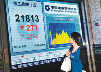 中新網(wǎng)12月16日電 據(jù)香港《文匯報(bào)》報(bào)道,港股經(jīng)周一反彈后15日再回吐,迪拜世界獲救,對(duì)港股的刺激只有一天,恒指15日又遇上大量沽盤(pán),最多跌310點(diǎn),全日收?qǐng)?bào)21813點(diǎn),跌271點(diǎn),成交額687.6億元。恒指再次失守50天線,期指也低水60點(diǎn),技術(shù)走勢(shì)進(jìn)一步轉(zhuǎn)差。