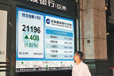 中新網(wǎng)3月9日電 據(jù)香港《文匯報》報道,美國就業(yè)數(shù)據(jù)理想,加上法國表示會支持希臘,紓緩歐洲債務(wù)危機(jī),亞太區(qū)股市普遍造好,港股8日也跟隨上升,最多曾升469點(diǎn)至最高的21257點(diǎn),收市報21196.8點(diǎn),升408.9點(diǎn),不單收復(fù)21000點(diǎn)大關(guān),更一舉升穿50天線,創(chuàng)6周收市新高,升幅達(dá)2%,但成交額只有650億元。