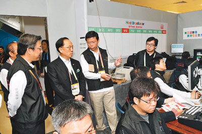 另外,曾蔭權(quán)上周末巡視東亞運(yùn)動會部分比賽場地,了解各項(xiàng)籌備工作并觀看彩排。在灣仔伊利沙伯體育館,特首特別巡視了東道主廣播機(jī)構(gòu)香港電臺的直播中心,了解賽事電視訊號的技術(shù)安排。署理廣播處長梁松泰及助理廣播處長張文新,向特首重點(diǎn)介紹香港電臺為東亞運(yùn)提供的廣播技術(shù)支持及投入的資源。