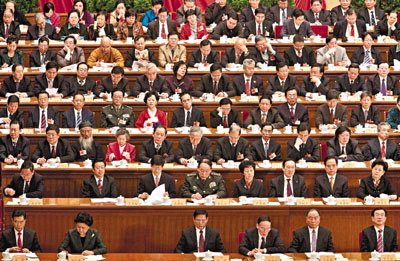 3日在主席臺(tái)就座的還有多名涉港澳臺(tái)事務(wù)高官,如港澳辦主任廖暉、全國政協(xié)港澳臺(tái)僑委員會(huì)副主任陳佐洱、海協(xié)會(huì)會(huì)長陳云林、澳門中聯(lián)辦副主任徐澤等,他們?nèi)谈┦卓粗鴪?bào)告認(rèn)真研讀,并不時(shí)拿筆寫寫畫畫,相當(dāng)用心。