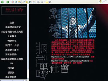 其中一名學生以黑社會為題制作網站,內容涉及幫派歷史、入會儀式、誓詞、暗語等,該生在首頁聲稱設立網站并非宣揚不法行為,只希望透過披露被視為禁忌的敏感數據,避免青少年因好奇而模仿或加入黑社會。