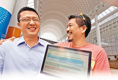 29日是聯(lián)招發(fā)榜的大日子,正在會計師樓做實習生的黃榮新趁午膳時間外出,在傳媒見證下,與恩師陳兆焯一同上網(wǎng)查閱聯(lián)招結(jié)果。盡管已獲樹仁大學工商管理課程錄取,黃榮新仍難掩緊張心情,指著計算機屏幕的手指都在顫抖,甚至幾次點擊聯(lián)招編號都出錯。