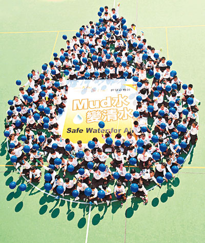 其中祖堯天主教小學(xué)19日率先揭開“改變世界我可以!”大行動(dòng)的序幕,約200名學(xué)生手持藍(lán)色氣球,于學(xué)校操場(chǎng)以身體砌成“Mud水變清水”的水滴點(diǎn),并高呼“改變世界我可以!”的口號(hào),以表達(dá)對(duì)貧困國(guó)家兒童飲用清水的關(guān)注及身體力行改變世界的決心。