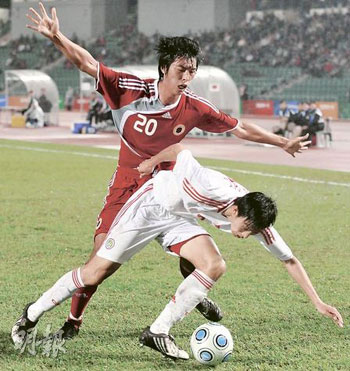 國家隊(duì)日前以0:3慘負(fù)韓國,必須大勝香港4球才可出線,8日晚面對有前鋒陳肇麒及中場梁振邦缺陣的香港,剛開賽已大舉出擊,并于24分鐘由高迪借角球攻勢射成1:0。但在6000名球迷吶喊助威下,香港隊(duì)雨戰(zhàn)中負(fù)隅頑抗,終力保0:1戰(zhàn)果,將國足淘汰出局。