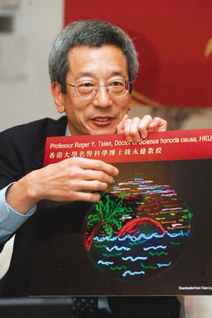 繼香港大學(xué)8日向錢永健頒授榮譽(yù)博士榮銜外,香港中文大學(xué)10日也會向他頒發(fā)榮譽(yù)理學(xué)博士,并由特首曾蔭權(quán)親自頒授。錢永健在香港的行程緊湊。他9日首先出席公開講座,以“點綠成金”為題,在香港大學(xué)發(fā)表演說,當(dāng)中展示了他的實驗室的最新研究進(jìn)展。