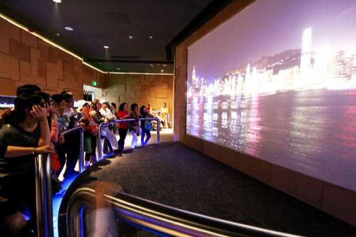 步入展覽廳,觀眾便置身于360度弧形屏幕,觀看一條長(zhǎng)2分鐘主題為“香港多面體”的短片,影片藉多元的聲音和視覺(jué)效果,帶出不同層次生活的對(duì)比,如城市與自然,傳統(tǒng)與現(xiàn)代,中西文化,發(fā)展與保育等。同時(shí),場(chǎng)內(nèi)有十四個(gè)直立LED顯示屏聯(lián)動(dòng)播放,營(yíng)造出動(dòng)感和引人入勝的視覺(jué)體驗(yàn)。觀賞影片時(shí),還可和地面上特制的磚塊互動(dòng),互動(dòng)地磚可感應(yīng)觀眾的移動(dòng),并配合短片的色調(diào),亮起不同的顏色方塊做出回應(yīng)。