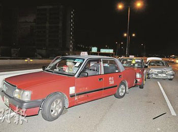 部分“賽車”沖越路障絕塵而去,部分則掉頭逃走,場面混亂。有車輛給“征用”的司機(jī)不滿警方利用他們做“人肉沙包”,直斥警方罔顧市民安全。