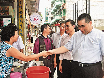 中新網(wǎng)7月15日電 據(jù)香港《文匯報(bào)》報(bào)道,為了親身了解民情,澳門行政長(zhǎng)官候選人崔世安14日巡視多區(qū)的街市和商鋪,了解經(jīng)營(yíng)情況,直接聆聽商戶的聲音,并與市民“零距離”接觸。