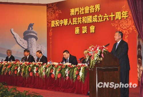 何厚鏵在致辭時(shí)表示,在國(guó)家六十華誕即將到來(lái)之際,澳門回歸祖國(guó)亦快將十周年。“一國(guó)兩制”方針和祖國(guó)的繁榮富強(qiáng),是保持澳門長(zhǎng)期繁榮穩(wěn)定的根本保證。