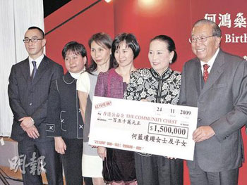 四太大女何超盈手持寫上“Happy Birthday 掂呀!”的巨型生日卡賀老父,四太則用手做出心形手勢(shì)表示送個(gè)心給賭王。二太藍(lán)瓊纓則率領(lǐng)三女一子何超瓊、何超鳳、何超蕸及何猷龍出席“賀禮捐公益”活動(dòng),代表賭王將一張150萬元的支票捐贈(zèng)公益金,并透露賭王進(jìn)展良好,但仍未可出院,要在醫(yī)院度生辰。