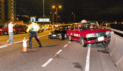 今年7月,警方于觀塘繞道攔截非法賽車時(shí),截停5輛的士、私家車及客貨車等,司機(jī)不滿被當(dāng)作“人肉路障”,部分車輛損毀嚴(yán)重,有的維修費(fèi)高達(dá)10萬元,司機(jī)向警方投訴要求賠償。
