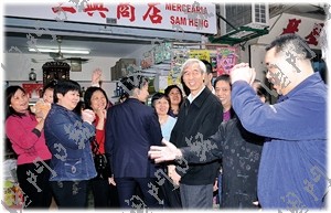 崔世安巡區(qū),傳媒蜂擁而至,所到之處無不吸引居民圍觀。不少居民隔住人群高喊自己的訴求,希望崔世安解決就業(yè)問題,繼續(xù)“派錢”解困。不少商鋪做足準(zhǔn)備,崔世安與負責(zé)人、職員互相拜年問好,不時詢問經(jīng)營情況。在探訪關(guān)閘一藥房時,還特別詢問藥劑師在什么地方畢業(yè),藥房生意好嗎?