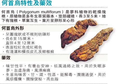 對于有人聲稱在港掘出巨大人形何首烏,李寧漢深感懷疑,他說,早在1996年有市民聲稱以1800元在廣西購下一對千年人形何首烏,一個有乳房、一個有男性性器,他認為非常奇怪,多番檢視及翻查數(shù)據(jù)也認為無可能,最后切開那人形何首烏后,發(fā)現(xiàn)所謂的人形何首烏其實是用芭蕉根雕刻而成。“切開后見到似芭蕉根一樣,有一個個小洞氣孔,還有芭蕉味道!”李寧漢說,不法商人把芭蕉根雕成人形后,在頭頂插上何首烏的枝葉,扮成何首烏,他又提醒市民,何首烏藥效雖佳,但不屬特別名貴的藥材,勿被人欺騙。