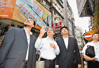 六月九日,腐蝕性液體傷人事件發(fā)生后,香港警方繼續(xù)對(duì)旺角奶路臣街與西洋菜南街交界處的幾棟嫌疑樓房進(jìn)行布控,進(jìn)一步排查疑點(diǎn),大批香港媒體亦在現(xiàn)場(chǎng)跟蹤報(bào)道。 中新社發(fā) 鄭祚聲 攝