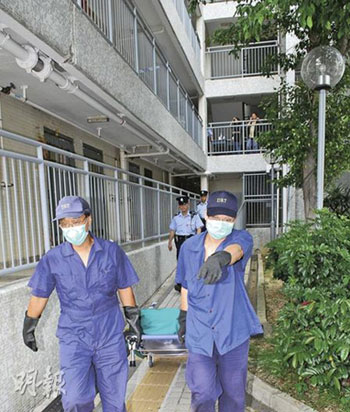 涉謀殺被捕男子姓凌,47歲,身形高大健碩,孔武有力。消息稱,凌某于2004年8月遷入龍?zhí)锎逄鞂帢?10室,不久即被強制入住小欖精神病院2個月,出院返回該處居住,但因噪音問題常與109室的鄰居沖突,對方一年后遷走。至去年5月,46歲死者馮╳英遷入109室,與凌某互不相讓,雙方紛爭不斷,素有積怨。