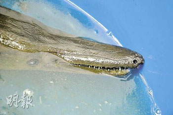 康文署6日再在轄下場地人工湖發(fā)現(xiàn)5條福鱷,即共發(fā)現(xiàn)22條。這5條新發(fā)現(xiàn)的福鱷,將被置于公園內游人不能到達地方,稍后再作處理。