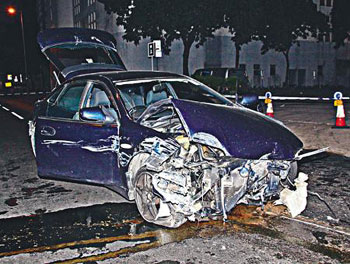 私家車突圍逃出后,至安全街時(shí)警車追至,私家車倒車連撞警車三次,在安全街加速疾馳,但失控撞毀路邊三個(gè)石欄繼而反彈路中,車頭盡毀無(wú)法開(kāi)動(dòng)。