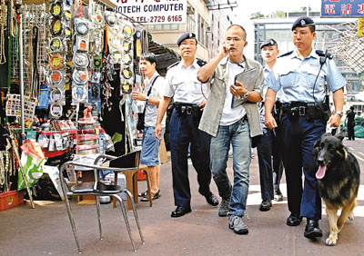中新網(wǎng)11月2日電 據(jù)香港《文匯報》報道,香港深水埗鴨寮街日前發(fā)生高空投擲腐蝕性液體案引起社會關(guān)注。警方1日連續(xù)第3天到鴨寮街搜證,并在高空監(jiān)察可疑人物。