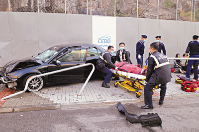 司機(jī)和女友人僅手腳輕傷,附近居民見(jiàn)狀報(bào)警,救護(hù)員接報(bào)到場(chǎng),證實(shí)男教師已死亡,隨即用帳篷覆蓋尸體,另將1男2女傷者送院救治。警方封鎖現(xiàn)場(chǎng)調(diào)查,特區(qū)政府化驗(yàn)師到場(chǎng)搜證,發(fā)覺(jué)現(xiàn)場(chǎng)只有很短的上臺(tái)剎車胎痕,肇事私家車事后被拖走檢驗(yàn)。