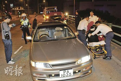中新網(wǎng)1月22日電 據(jù)香港《明報(bào)》報(bào)道,香港三名猖狂惡煞,21日凌晨在灣仔行車天橋上高速飛車將仇家所駕私家車強(qiáng)行截停,用鐵錘敲爆車窗,遇襲司機(jī)慌亂倒車欲逃,卻撞及尾隨的士,無(wú)路可退下慘遭撲穿頭,血流滿面,車內(nèi)一個(gè)放有現(xiàn)金的手袋也被搶去,惡煞逃去無(wú)蹤。