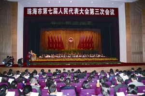珠海七屆人大三次會議25日上午在珠海大會堂開幕,珠海市委書記甘霖,市委副書記、市長鐘世堅,政協(xié)主席余炳林等出席。