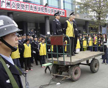圖:深圳警方高調(diào)處理涉嫌販毒的罪犯。(圖片來源:大公報(bào))