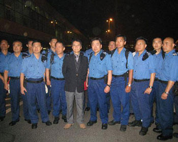 香港特別行政區(qū)政府駐成都經(jīng)濟貿(mào)易辦事處主任陸仿真,及四川省人民政府港澳事務(wù)辦公室副主任賀平15日清晨在成都機場迎接香港特區(qū)政府一隊20人的搜救隊。搜救隊抵達后會隨即與當?shù)鼐仍犖檎归_四川地震搜救工作。